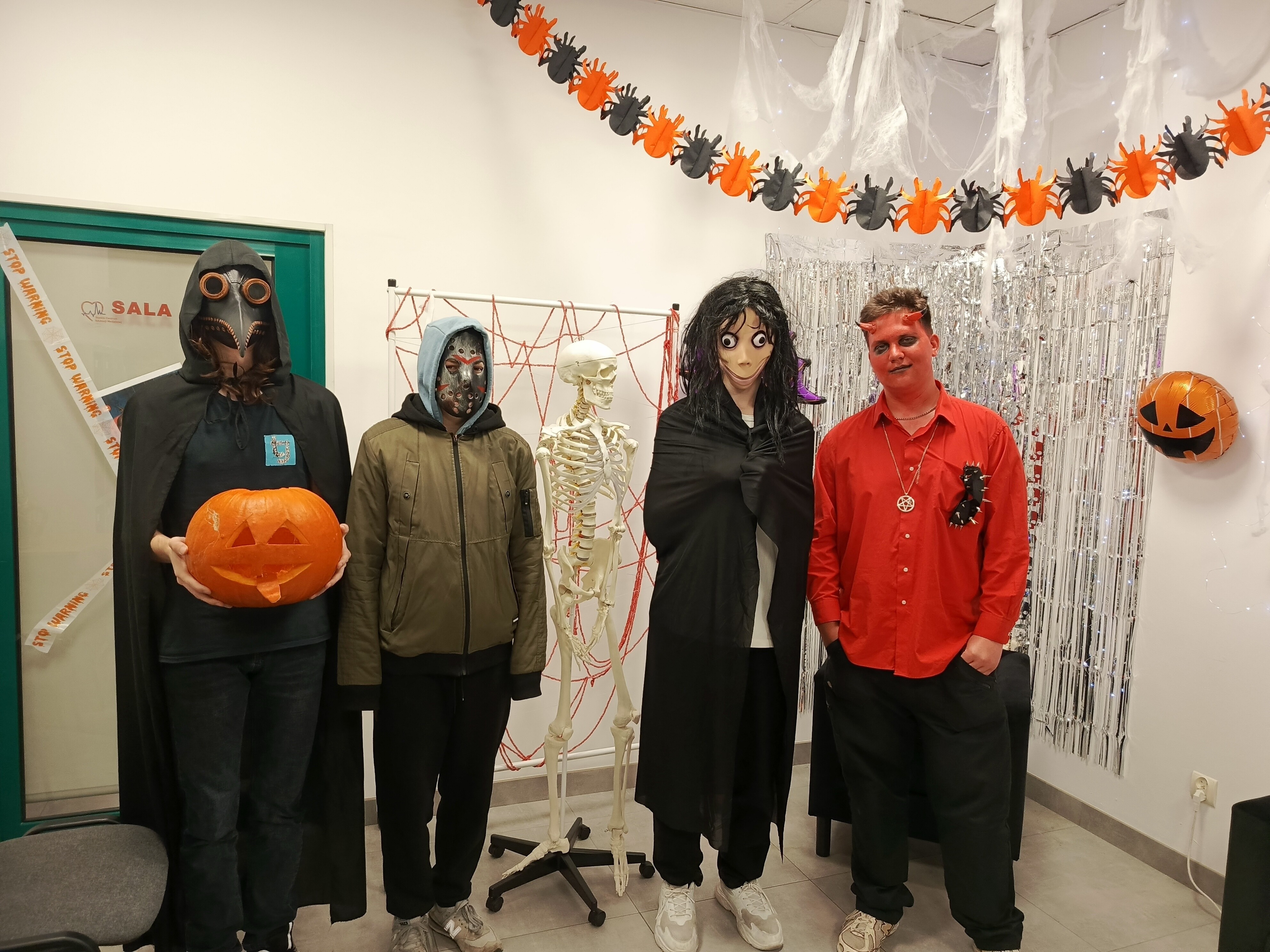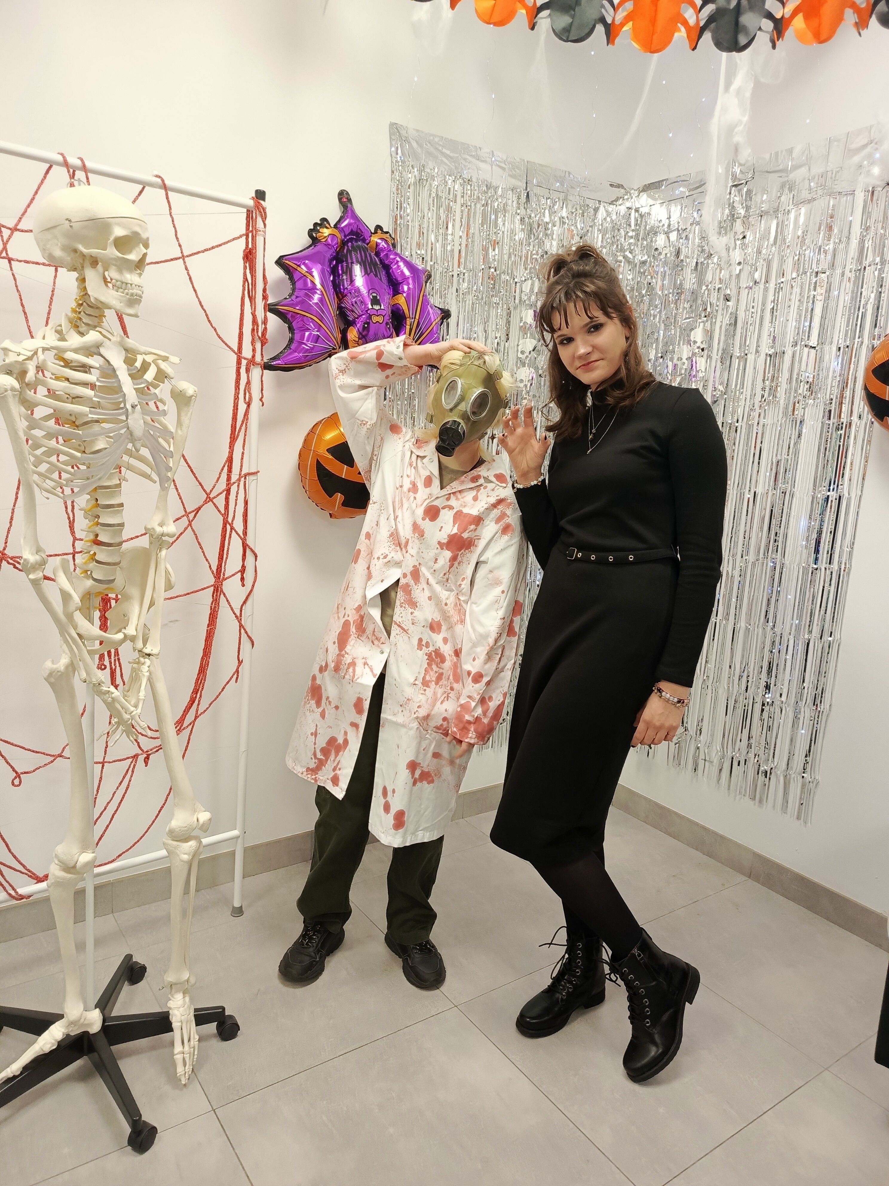 Dziś w naszym liceum panowała naprawdę upiorna atmosfera! Korytarze ozdobione pajęczynami, duchami i dyniami wprowadziły wszystkich w halloweenowy nastrój. Już od rana uczniowie pojawiali się w przebraniach – można było spotkać wampiry, zombie, a nawet diabłów.