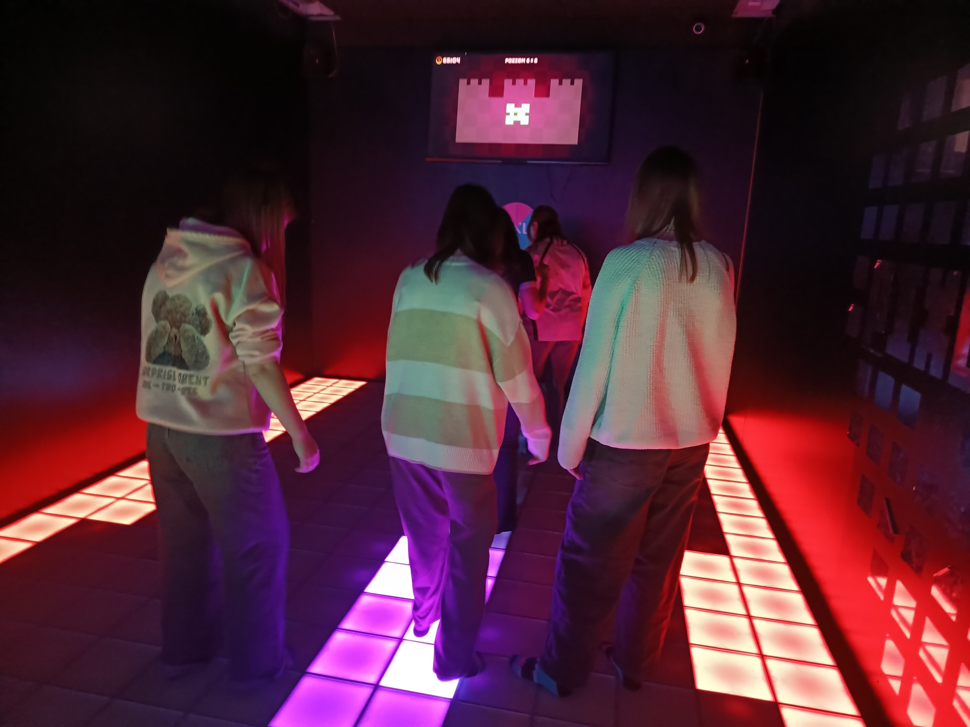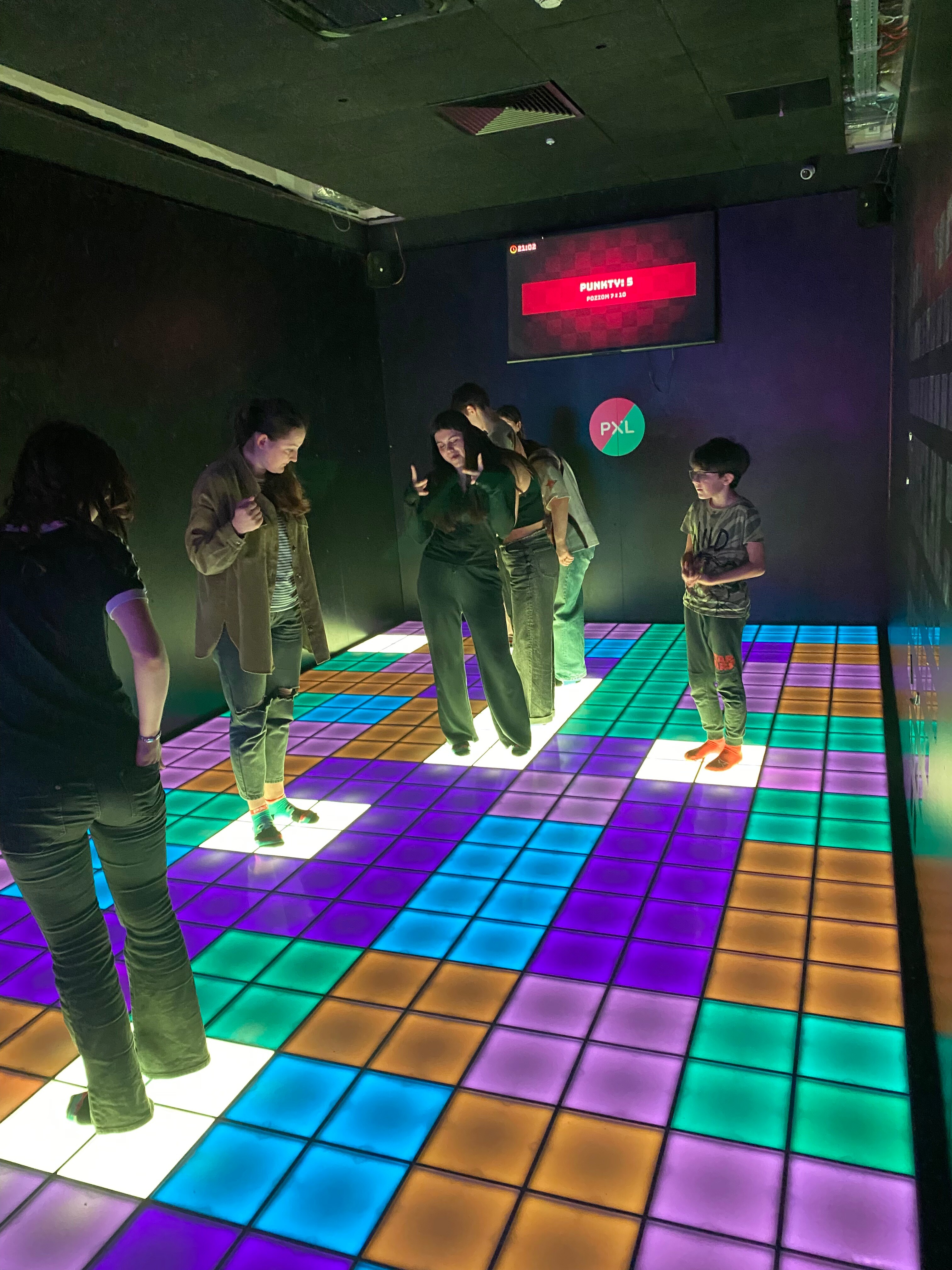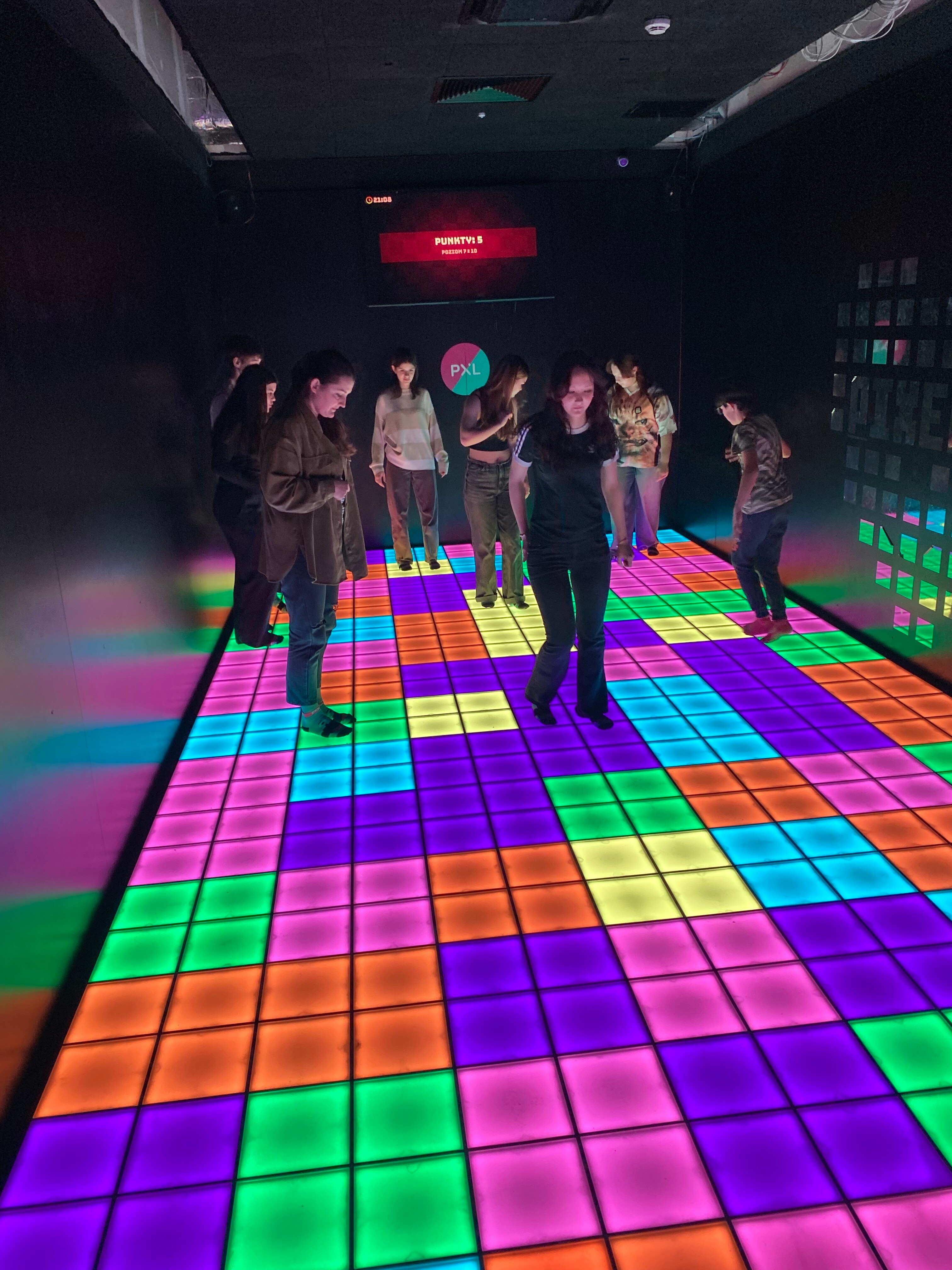 Pixel XL to unikalne miejsce na mapie Katowic, które oferuje interaktywne gry na podświetlanej matrycy. Nasi uczniowie musieli wykazać się nie lada kondycją, skacząc po kolorowych polach, unikając przeszkód i realizując złożone zadania logiczne w czasie rzeczywistym. To był prawdziwy test dla ich zwinności, szybkości reakcji oraz umiejętności współpracy pod presją czasu.