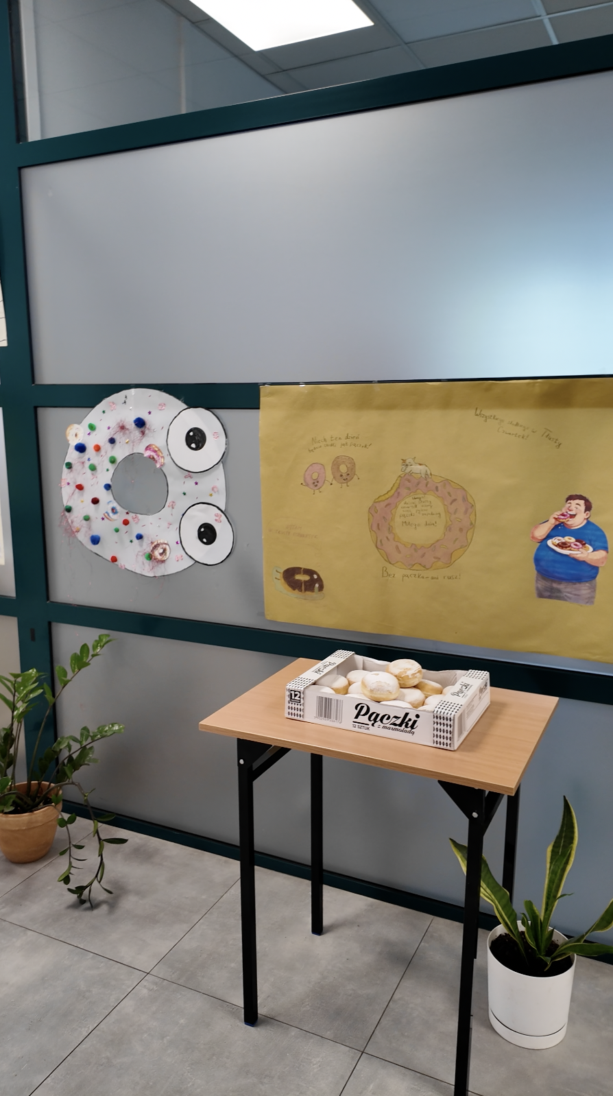 Oczywiście nie mogło zabraknąć najważniejszego elementu tego dnia. Dzięki zaangażowaniu całej społeczności szkolnej, każdy mógł liczyć na słodki poczęstunek. Pączki z tradycyjnym nadzieniem stały się idealnym pretekstem do integracji międzyklasowej i chwili odpoczynku od lekcyjnych obowiązków.