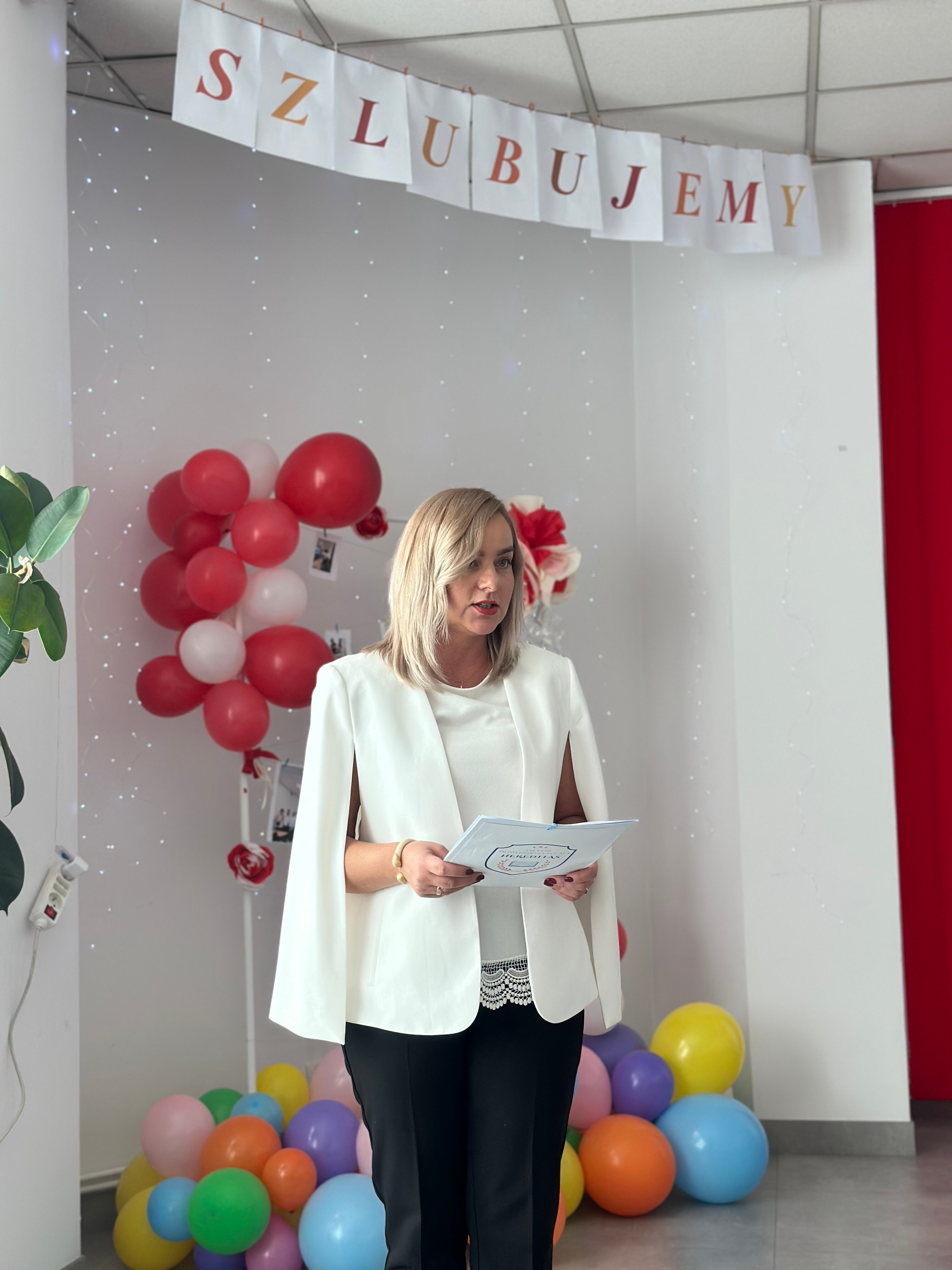 Następnie głos zabrała Pani Dyrektor Małgorzata Kolbusz, która w ciepłych słowach powitała pierwszoklasistów. W swoim przemówieniu podkreśliła znaczenie odpowiedzialności, zaangażowania i wzajemnego szacunku w codziennym życiu szkolnym. Zachęcała uczniów, by odważnie podejmowali nowe wyzwania, rozwijali swoje pasje i pamiętali, że każdy dzień w liceum jest szansą na naukę i samorealizację.