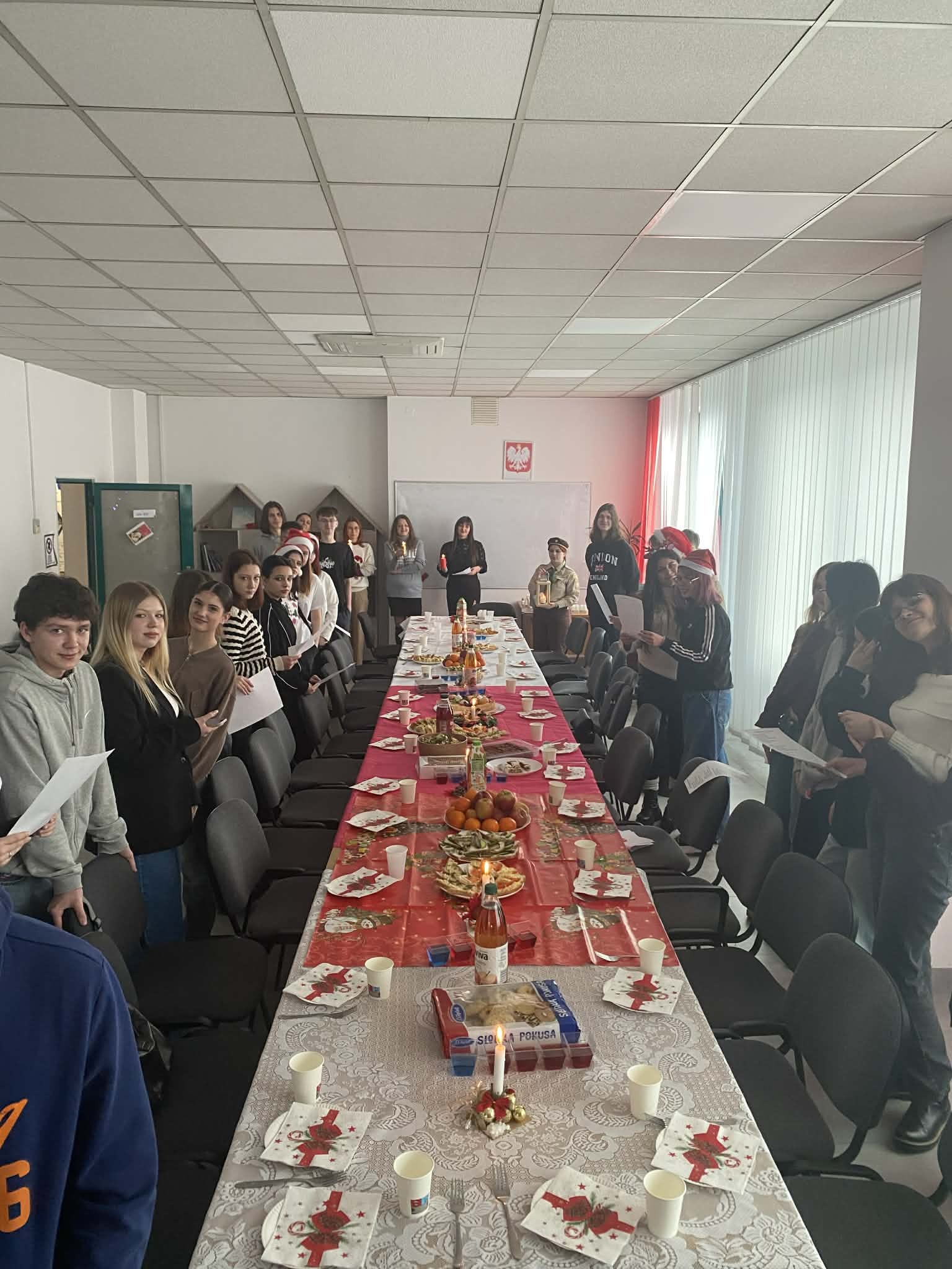 Okres przedświąteczny w naszym liceum był wyjątkowym czasem pełnym ciepła, radości i wspólnego świętowania. Szkolne korytarze wypełniły się zapachem domowych wypieków, a pięknie udekorowane stoły stworzyły niepowtarzalny klimat, który na długo pozostanie w naszej pamięci.