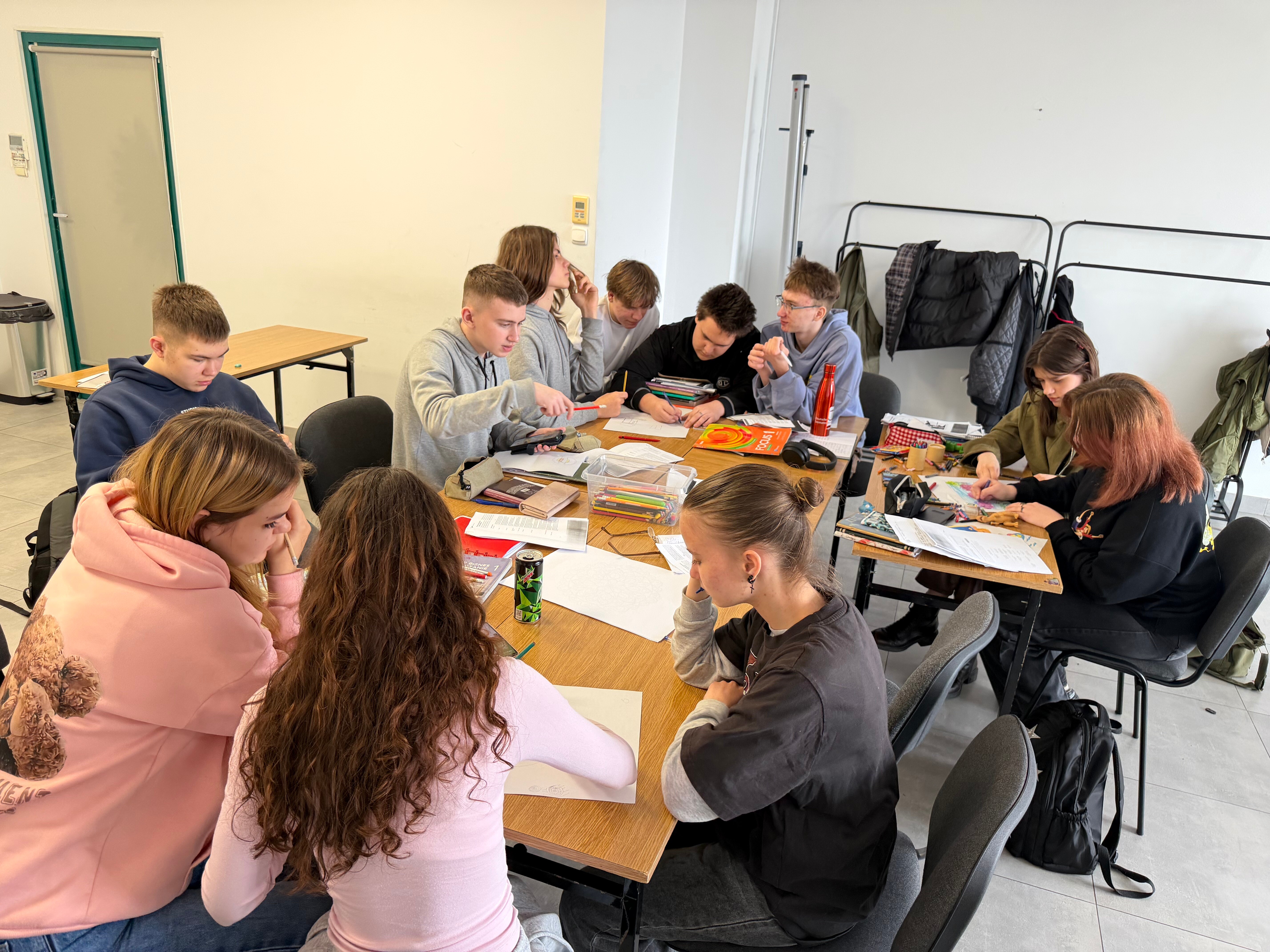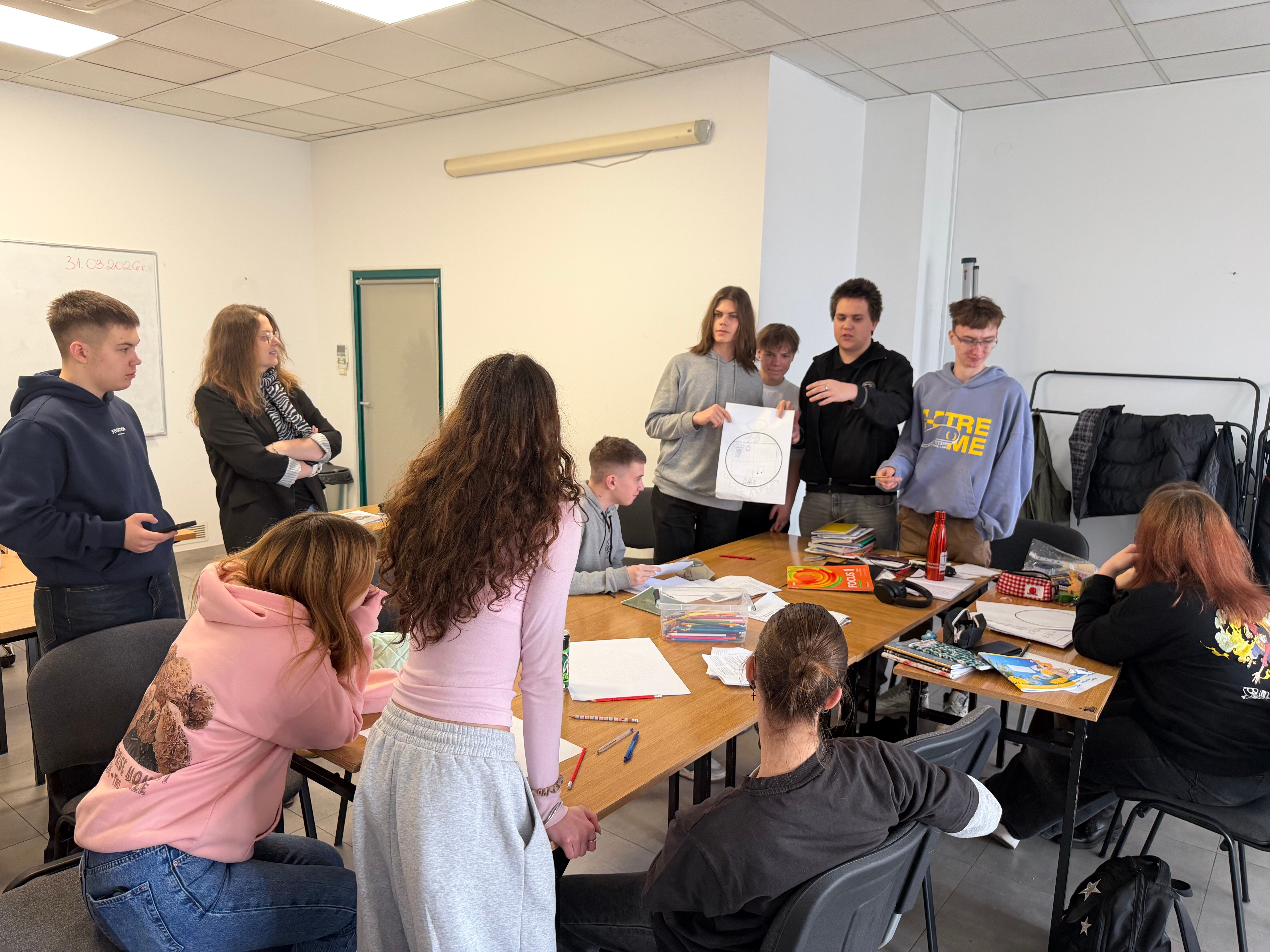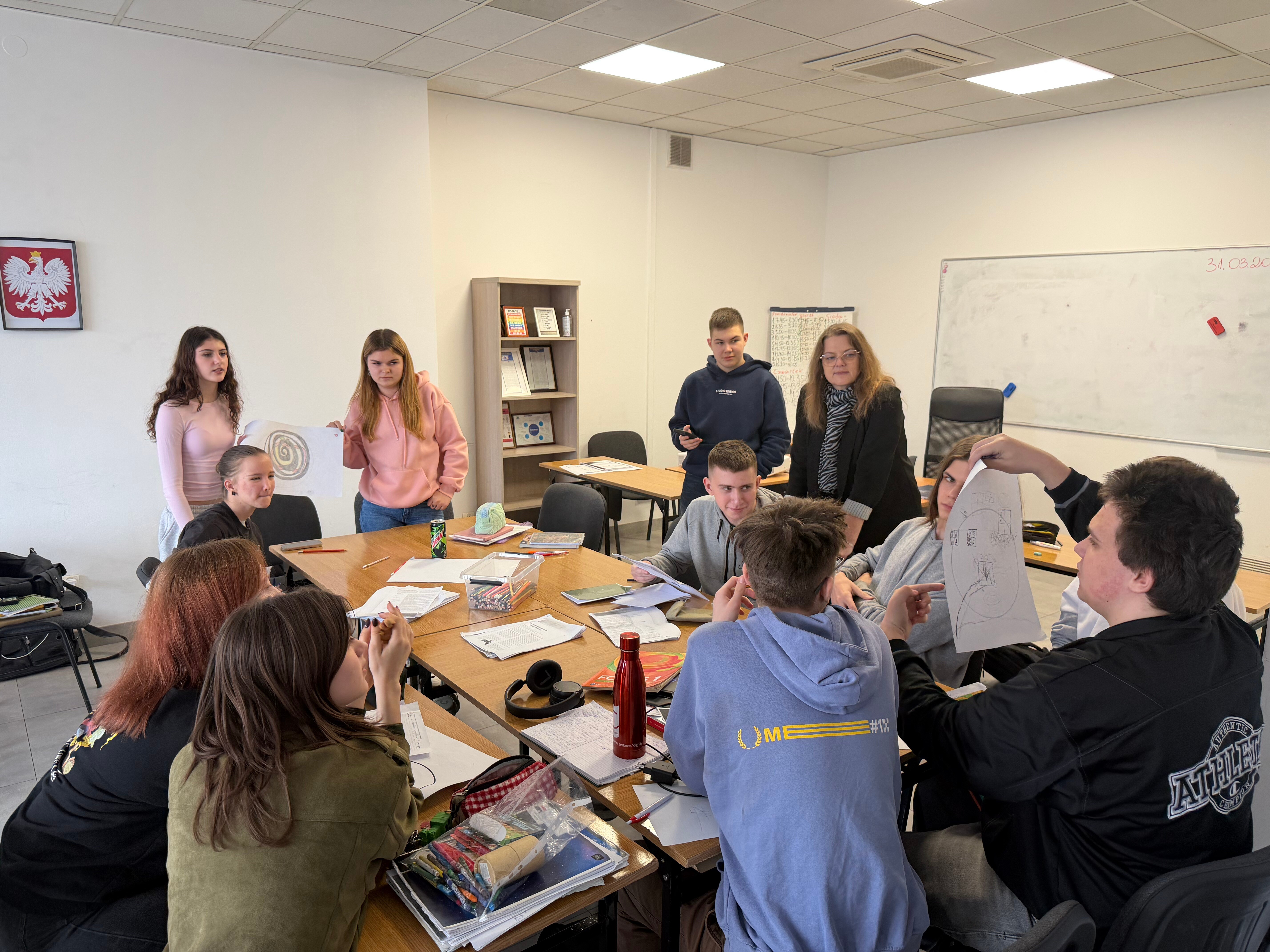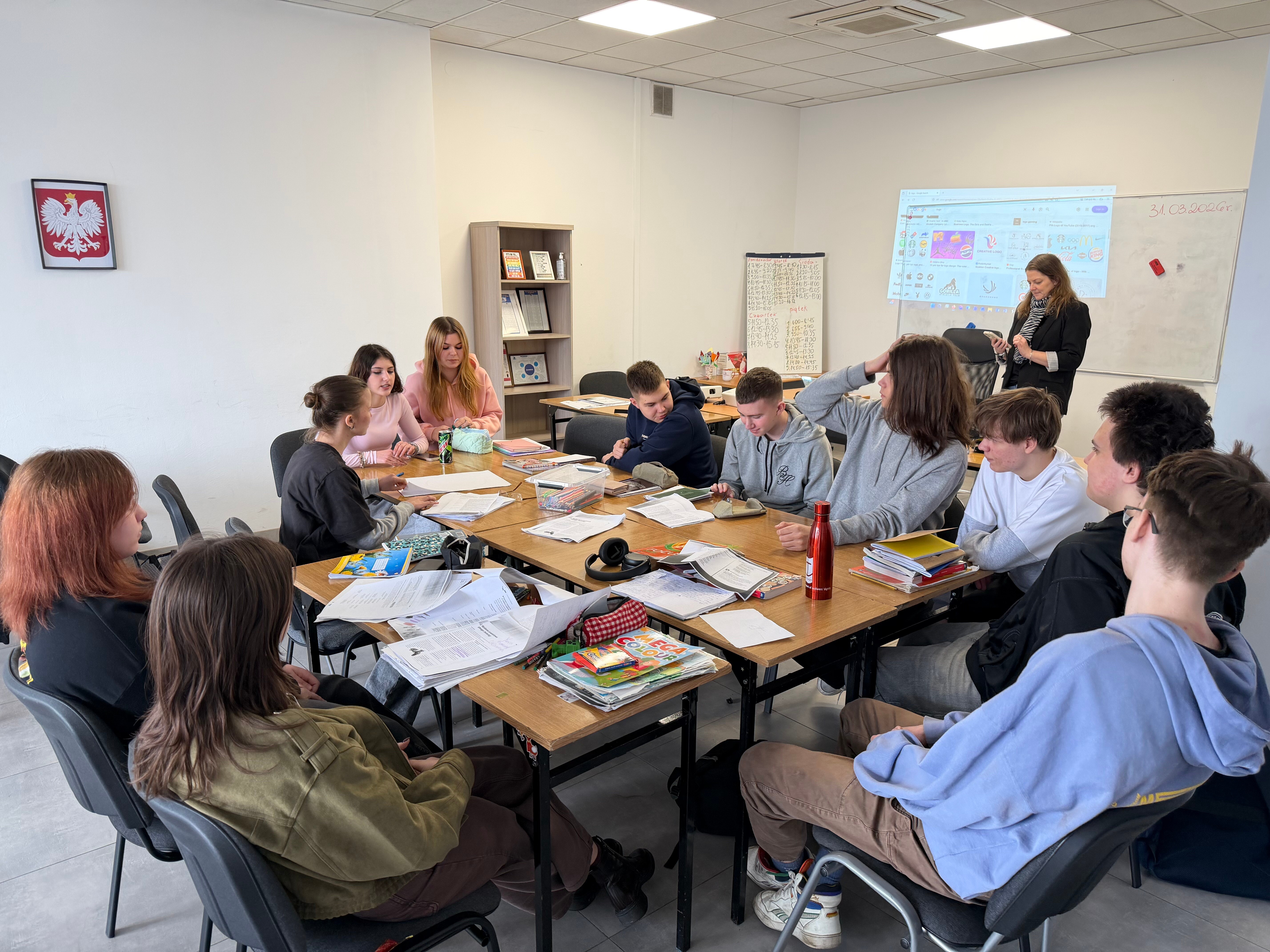Zajęcia w klasie o profilu biznesowym rzadko przypominają tradycyjne wykłady, o czym najlepiej świadczą ostatnie warsztaty poświęcone projektowaniu tożsamości wizualnej. Uczniowie stanęli przed ambitnym wyzwaniem stworzenia logotypu swojej klasy, który miałby stać się fundamentem ich wspólnej marki. Zamiast analizować suche definicje marketingu, młodzi przedsiębiorcy od razu przeszli do działania, zamieniając salę lekcyjną w profesjonalne studio projektowe wypełnione arkuszami papieru, kolorowymi szkicami i ożywioną dyskusją.