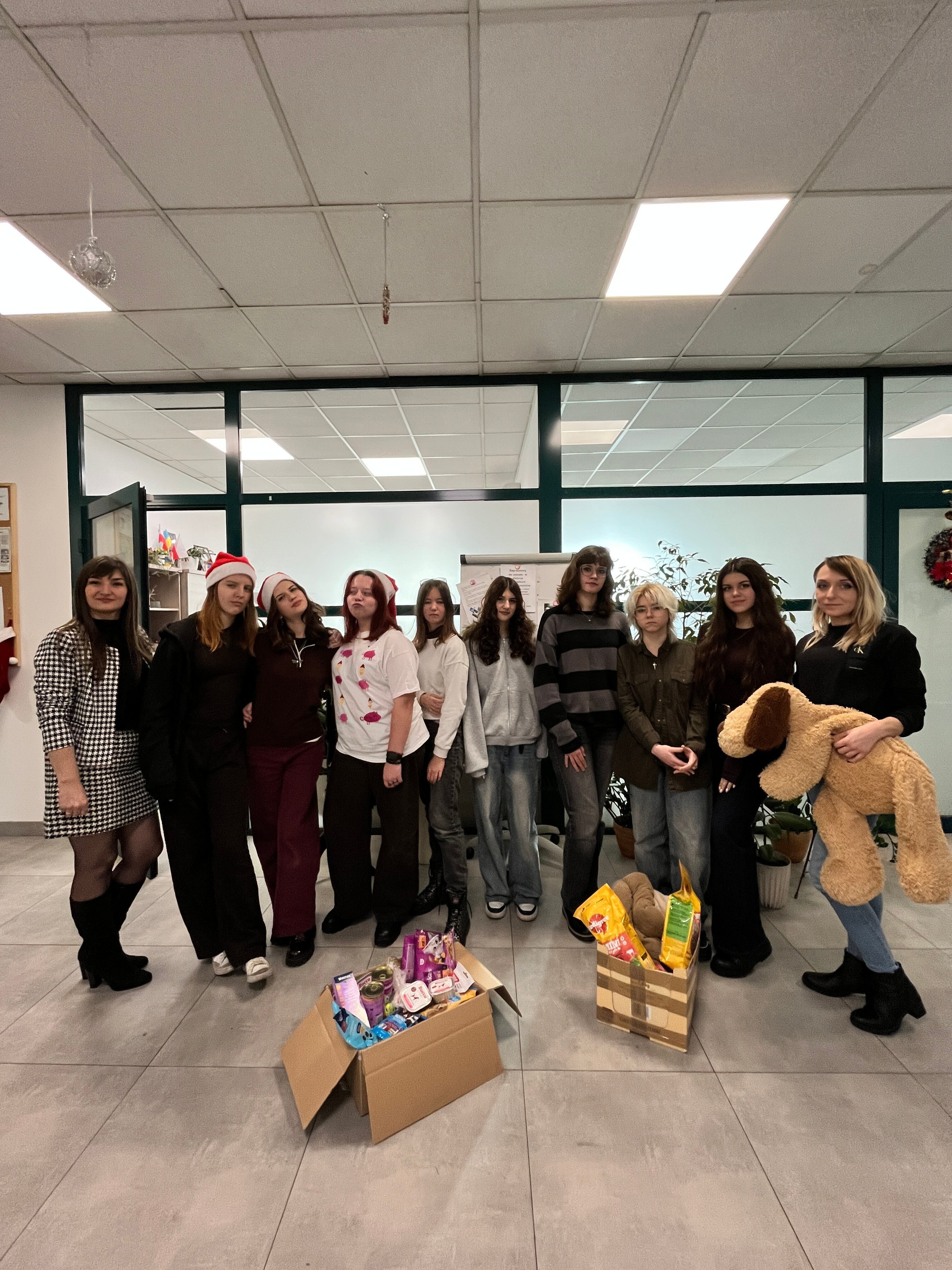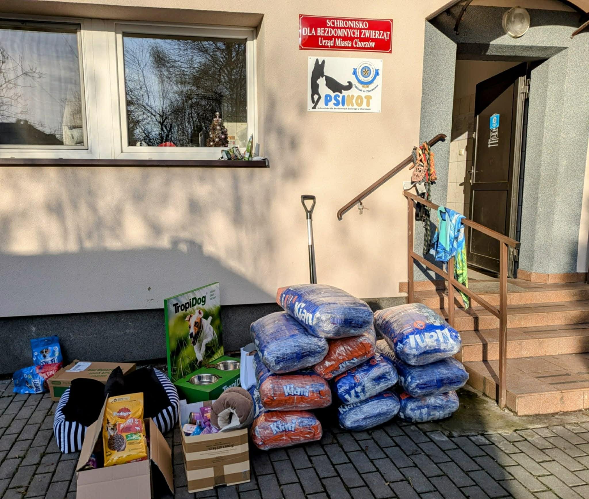 10 grudnia 2025 roku przekazaliśmy do Schroniska dla Bezdomnych Zwierząt „Psikot” w Chorzowie dary zebrane dzięki ogromnej hojności uczniów, nauczycieli oraz pracowników szkoły. Wśród przekazanych rzeczy znalazła się przede wszystkim karma, koce, akcesoria oraz środki potrzebne do codziennej opieki nad zwierzętami.