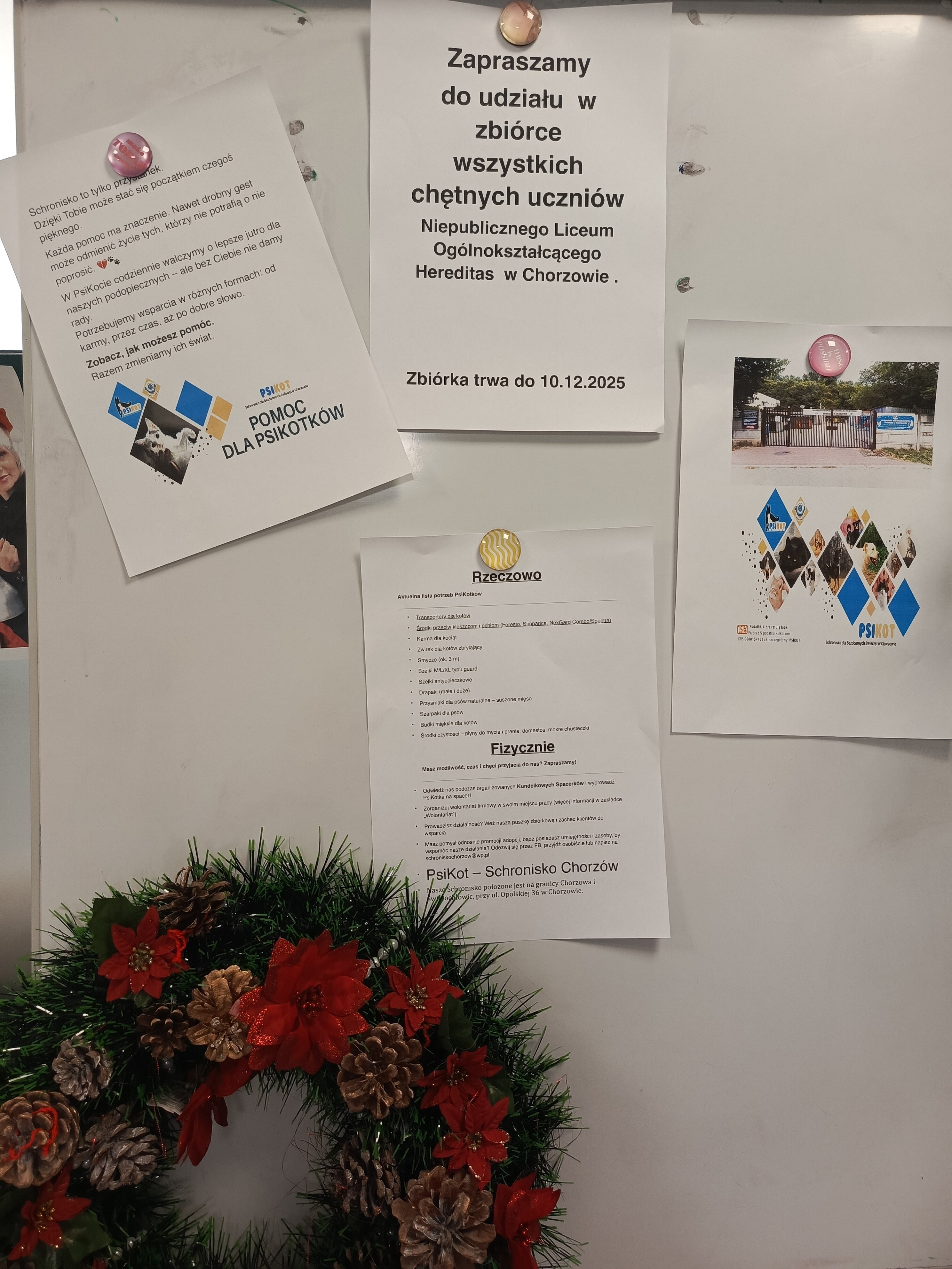 Koło Wolontariatu oraz Samorząd Uczniowski Liceum Ogólnokształcącego Hereditas w Chorzowie od początku swojego istnienia angażują się w działania skierowane do osób i instytucji najbardziej potrzebujących. Choć nasza szkoła działa dopiero od niedawna, już teraz udało nam się zorganizować pierwszą akcję pomocową – i z dumą możemy powiedzieć, że zakończyła się ona sukcesem.